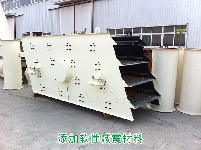 在篩床及其支架之間的螺栓聯(lián)接處,襯墊橡膠墊塊等軟性材料,起到對傳動部件在運轉(zhuǎn)中產(chǎn)生振動的緩沖減振作用,也就是說,降低了篩機殼體共鳴箱的噪聲源的強度,對降低噪聲有明顯作用。