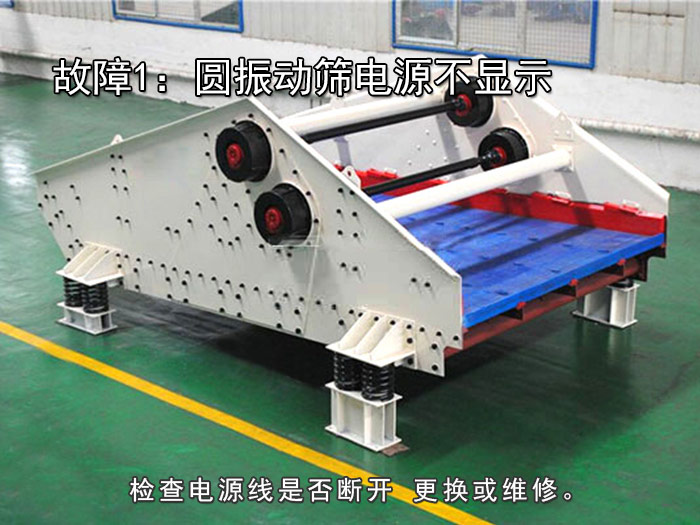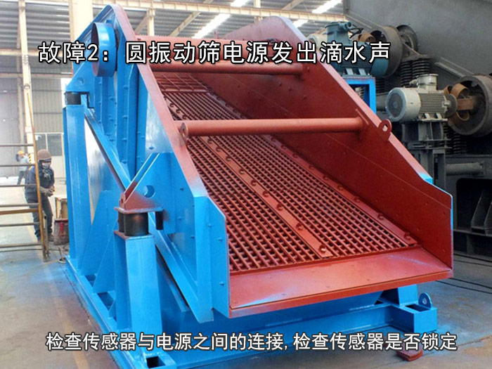 圓振動篩電源發(fā)出連續(xù)或間歇的滴水聲,或網(wǎng)面無振動;