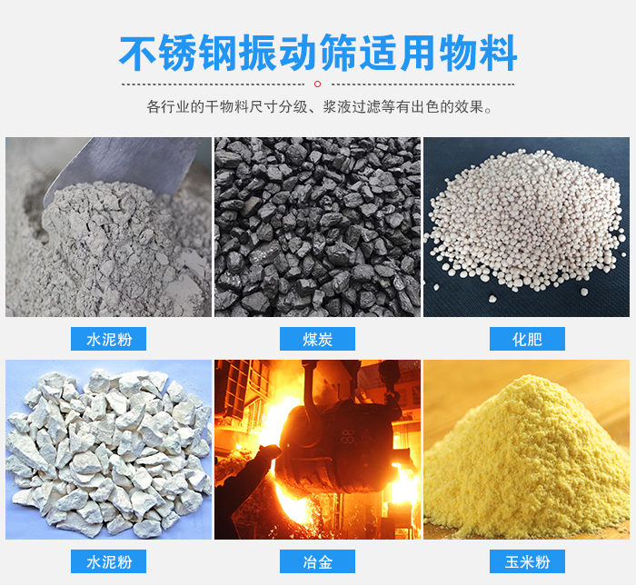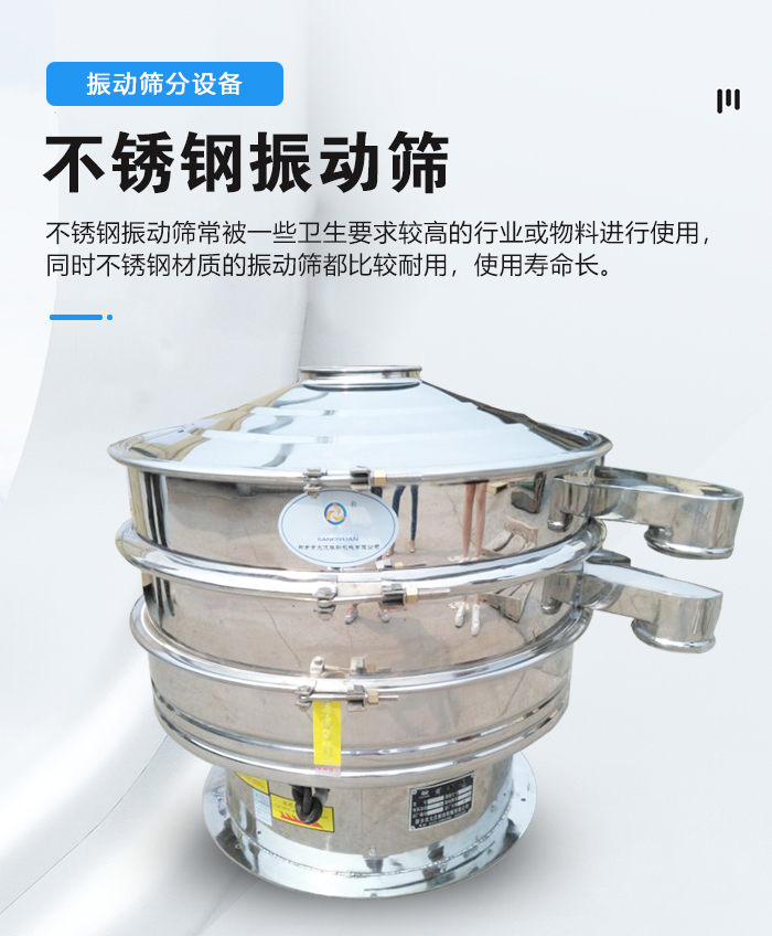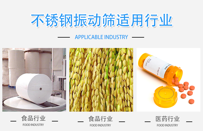 不銹鋼振動篩應用行業(yè):食品行業(yè)專用旋振篩、化工行業(yè)專用旋振篩、制藥行業(yè)專用旋振篩、陶瓷行業(yè)專用旋振篩、磨料磨具行業(yè)專用旋振篩、冶金行業(yè)專用旋振篩等等。