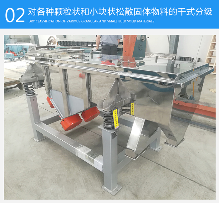 二、不銹鋼方型篩也叫不銹鋼直線振動篩,是一種直線振動篩。廣泛適用于煤炭、冶金、礦山、電力、建材、輕工和化工等行業(yè)對各種顆粒狀和小塊狀松散固體物料的干式分級。