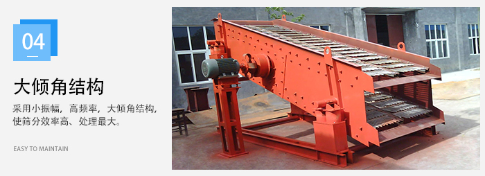 4,采用小振幅,高頻率,大傾角結(jié)構(gòu),使該機(jī)篩分效率高、處理。