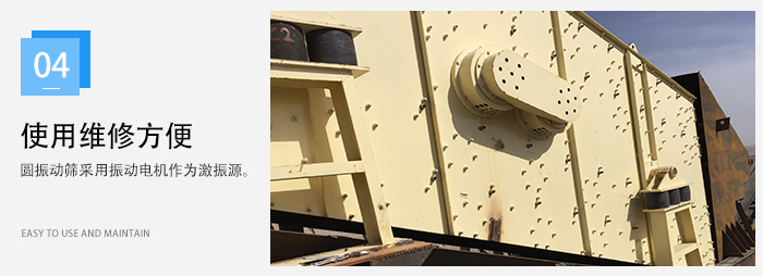 4、圓振動(dòng)篩采用振動(dòng)電機(jī)作為激振源,使用維修方便。