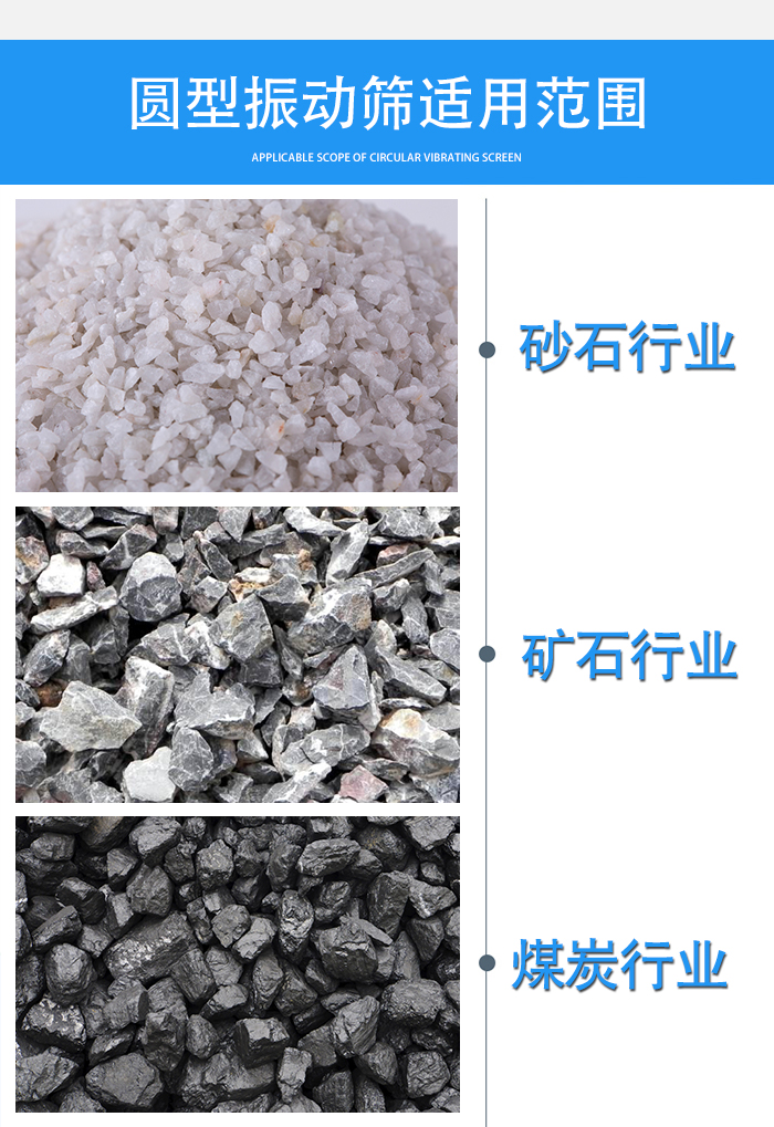主要用于礦山、煤碳、電力、冶煉、建材、化工等行業(yè),對(duì)砂石、礦石、煤炭等散裝物料機(jī)型粒度分級(jí)。